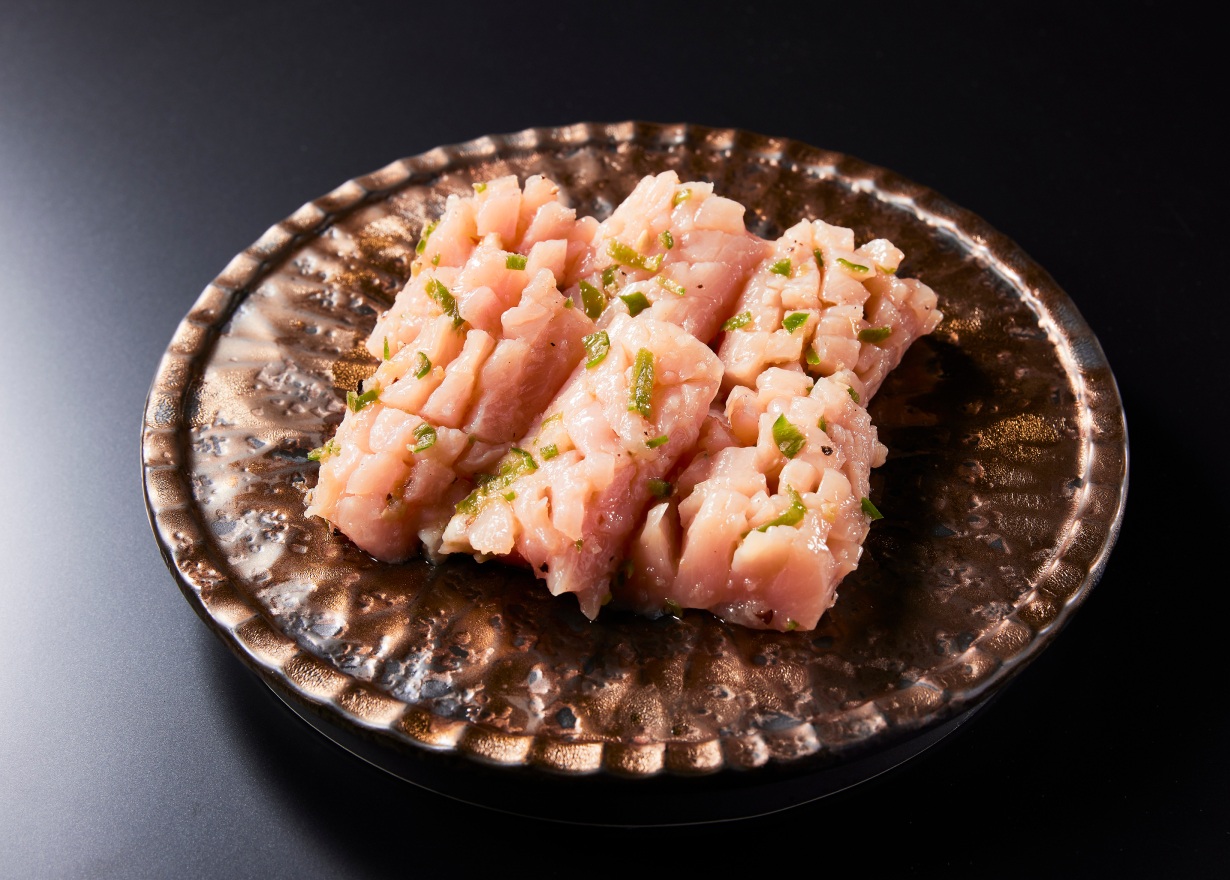 ザラリとした舌触りと歯応えのあるセンマイは箸休めにもおすすめです。炙りユッケや牛ハツ刺しも人気の逸品です。